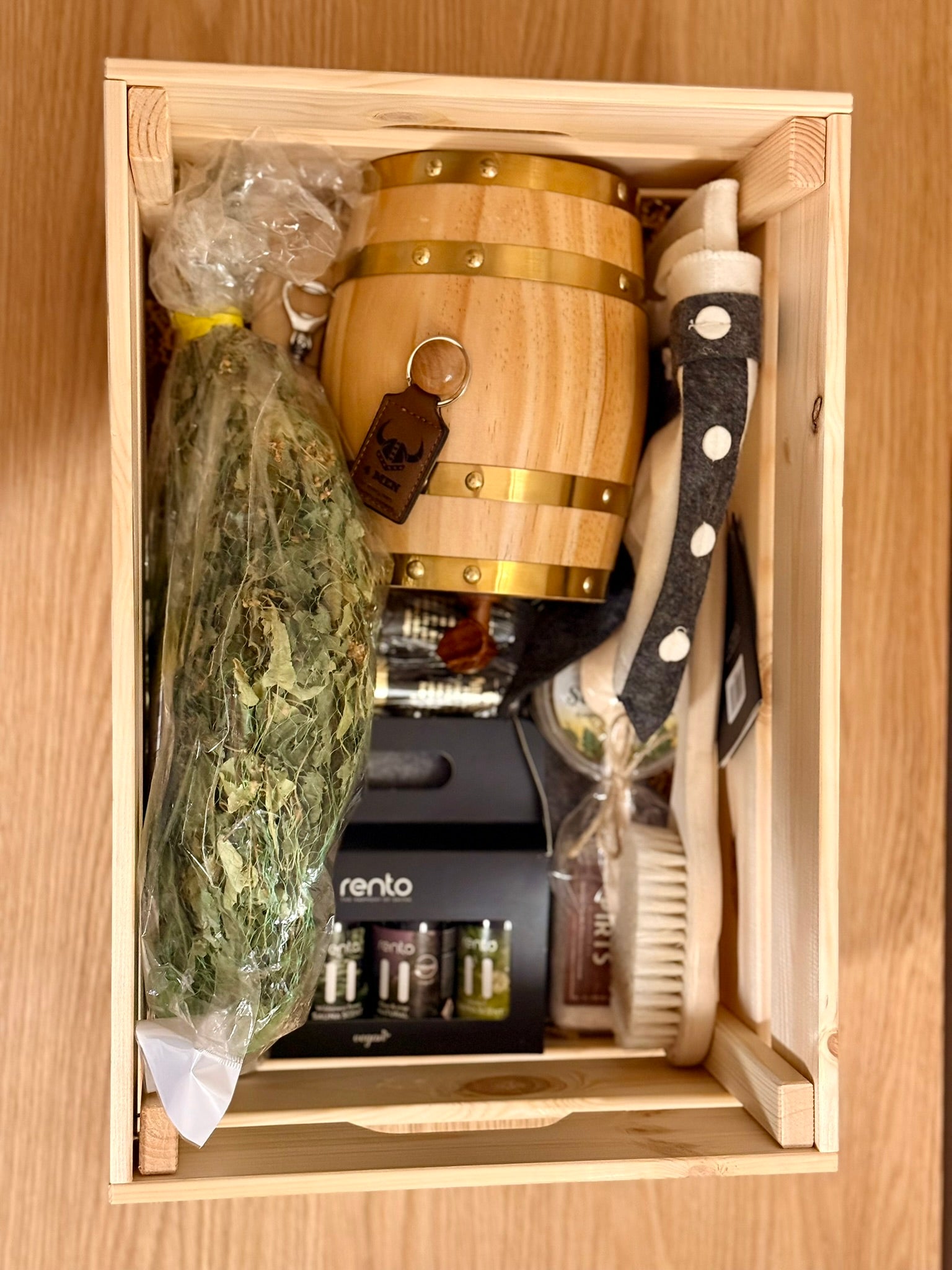 ✅ Saunaviht (Premium tamm/pärn) – Looduslik viht aitab lõõgastuda ja parandab vereringet.
